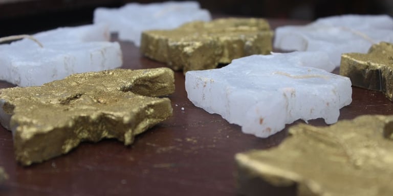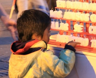A performance using a chaza (vendor's display system) where people negotiate the worth of Colombia by buying candle-shaped maps and sharing stories, dreams, or memories.